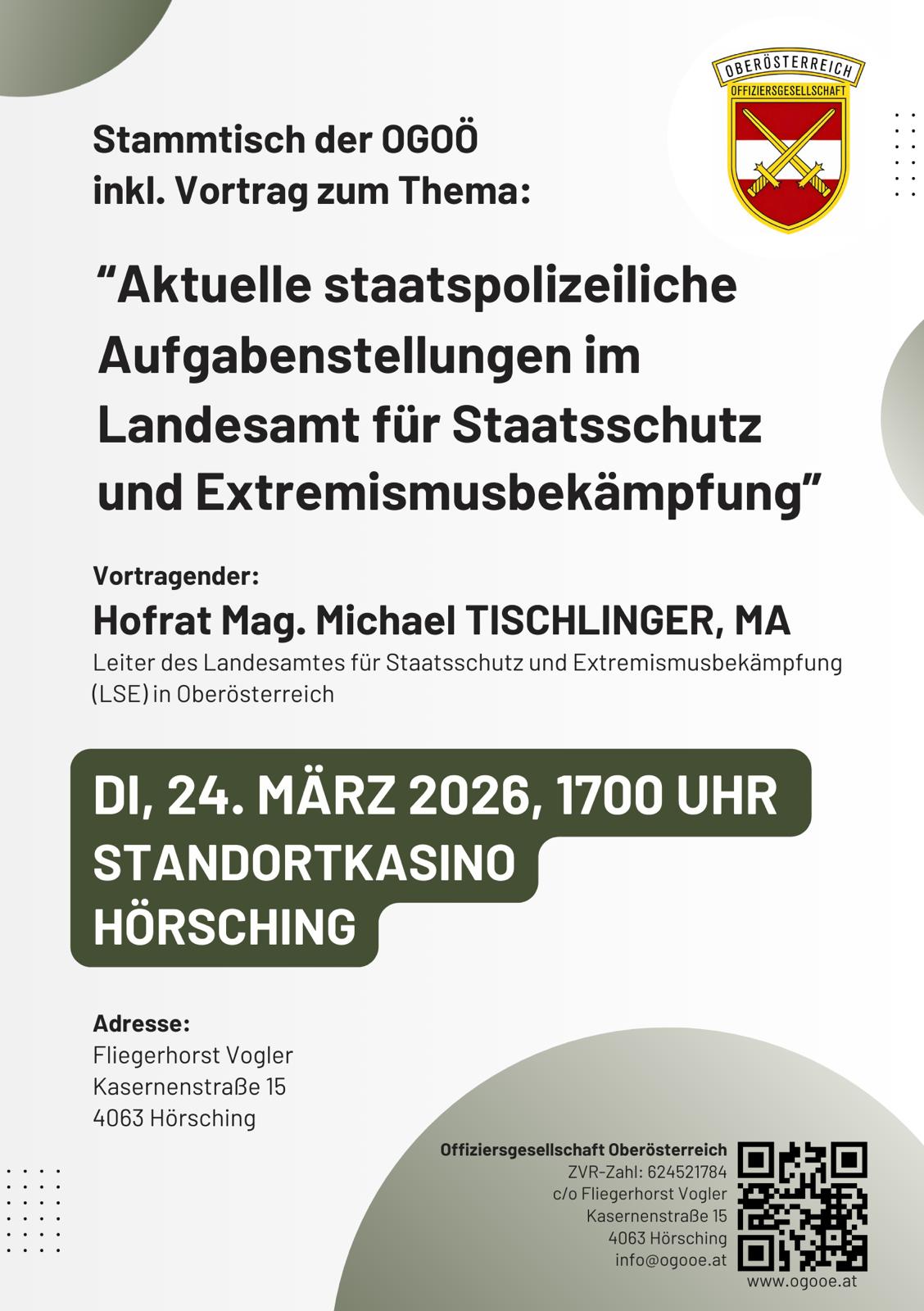 Im Rahmen unseres heutigen OG-Stammtisches durften wir Obstlt Marko KALTENEGGER im Standortkasino des Fliegerhorsts VOGLER begrüßen.