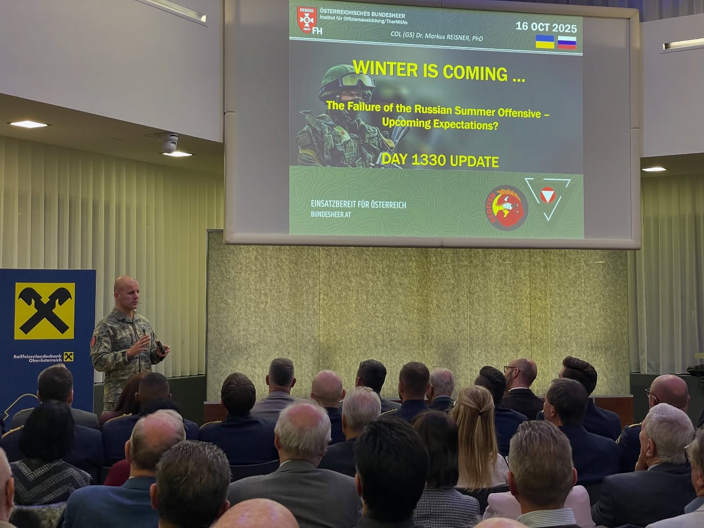 Unter dem Titel „Welt aus den Fugen“ lud die Offiziersgesellschaft Oberösterreich (OG OÖ) am 16. Oktober 2025 in den Raiffeisensaal der Raiffeisenlandesbank Oberösterreich zu einem hochaktuellen Vortragsabend ein.